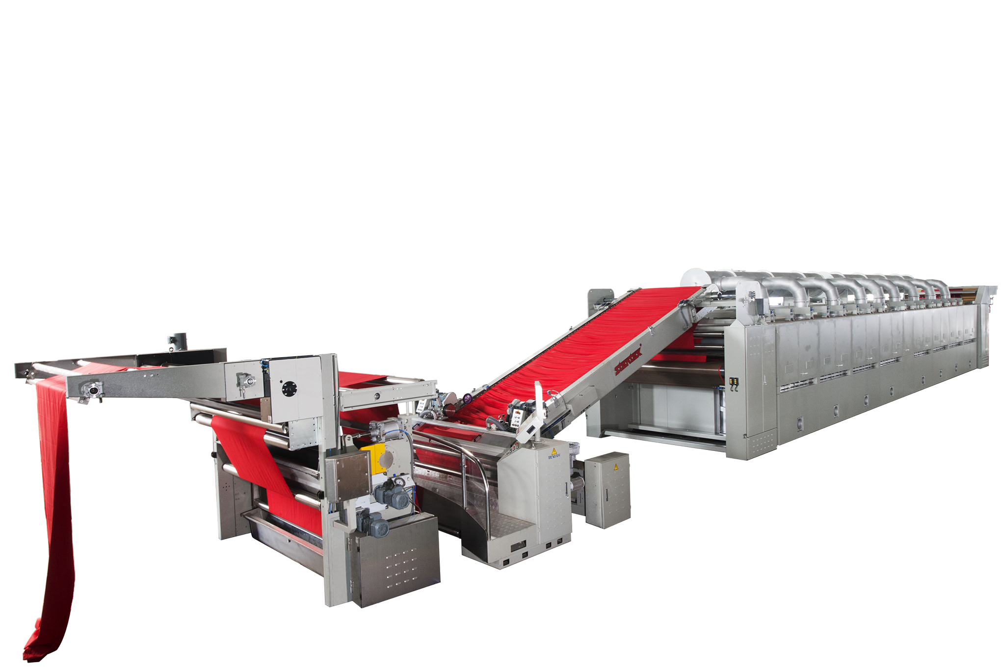 產(chǎn)品簡(jiǎn)介:TS16 系列烘干機(jī)是一款高效的松式網(wǎng)帶烘干機(jī),適用于開幅以及圓筒織物烘干。該烘干機(jī)機(jī)械設(shè)計(jì)獨(dú)特, 在烘干過(guò)程中使得織物的經(jīng)向紗線有回縮的機(jī)會(huì),以恢復(fù)紗線的平衡狀態(tài)和消除織物內(nèi)應(yīng)力